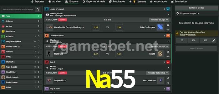O Na55 oferece uma grande seleção de opções de apostas em e-sports com probabilidades competitivas